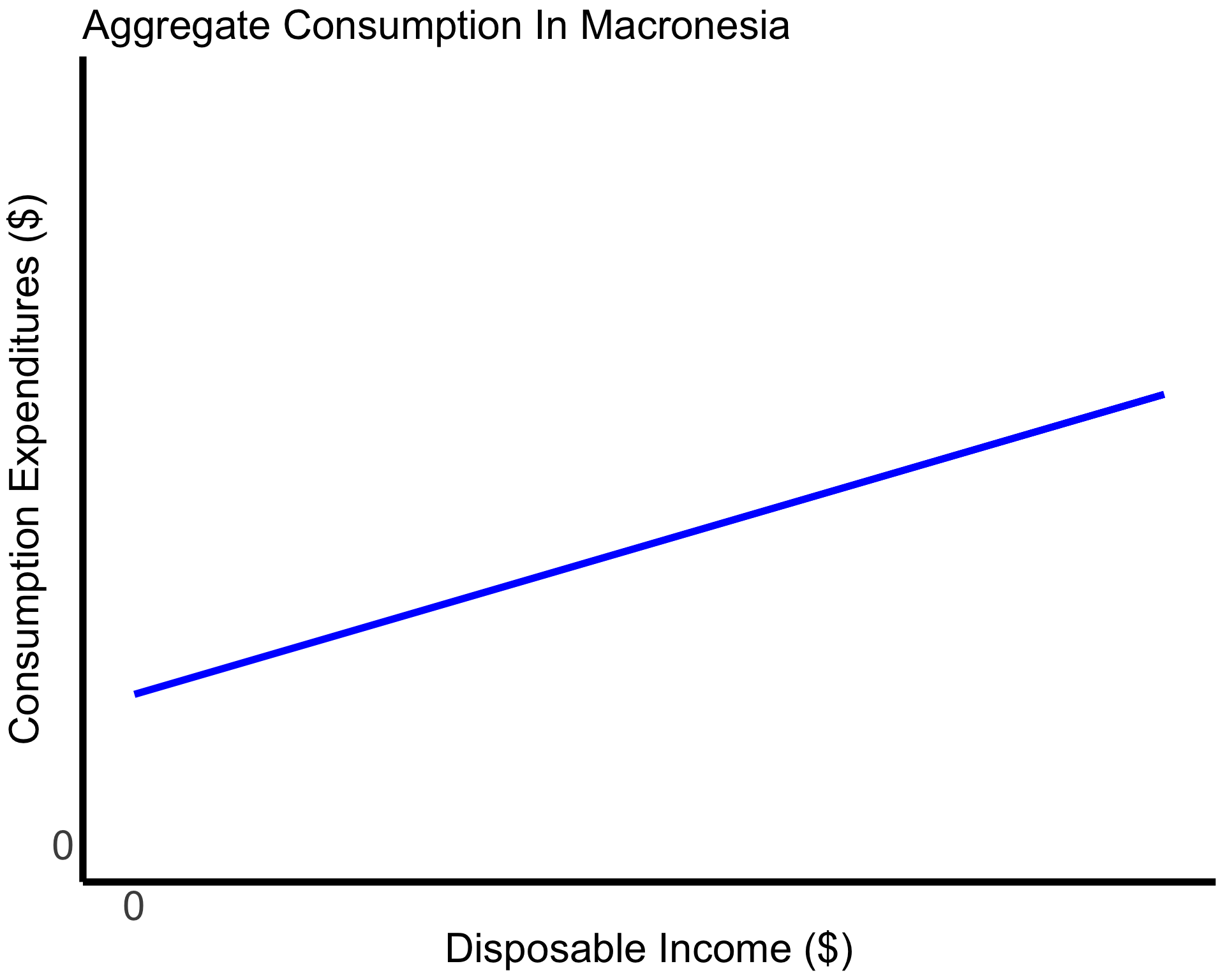 The aggregate consumption function for the country of Macronesia is plotted to the right.